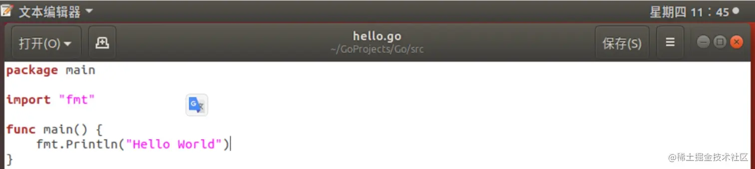 保存完后运行,命令为: go run hello.go ,就能看到输出 Hello World 显示在屏幕了。
