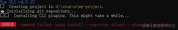 如果报错:command failed: pnpm install --reporter silent --shamefully-hoist,则需要将命令改成