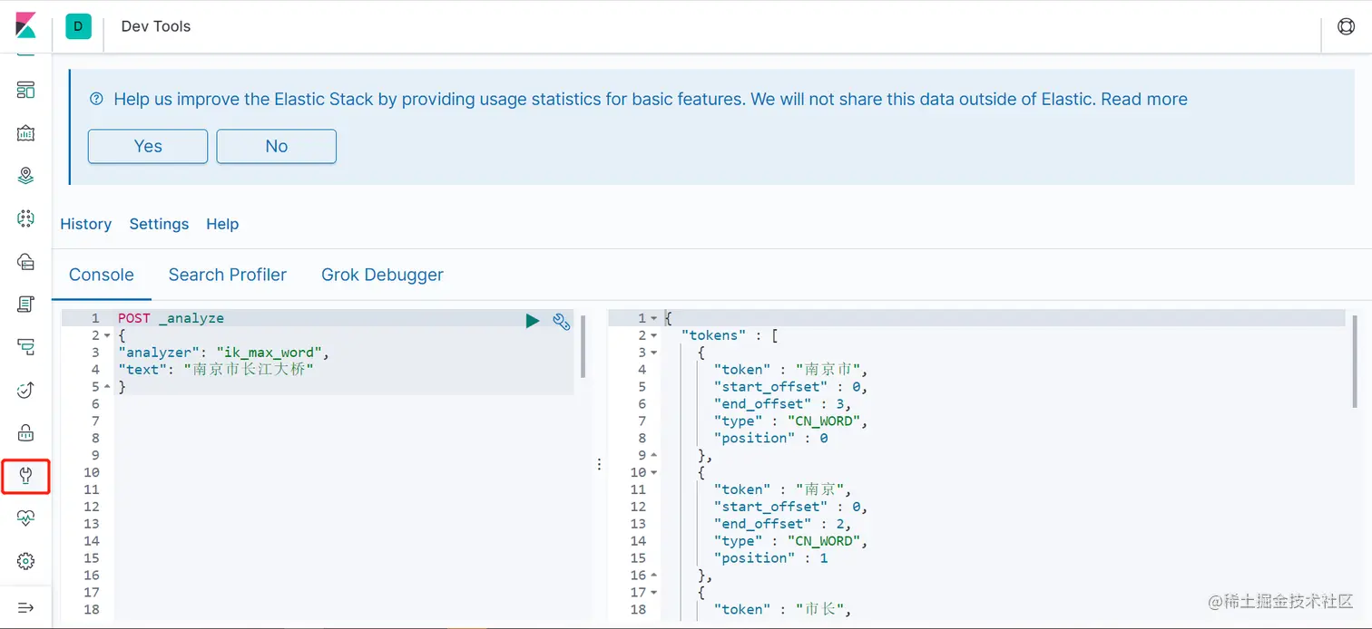 以上配置定义了ik_sync_max_word和ik_sync_smart这两个新的analyzer,对应IK的ik_max_word和ik_smart两种分词策略。