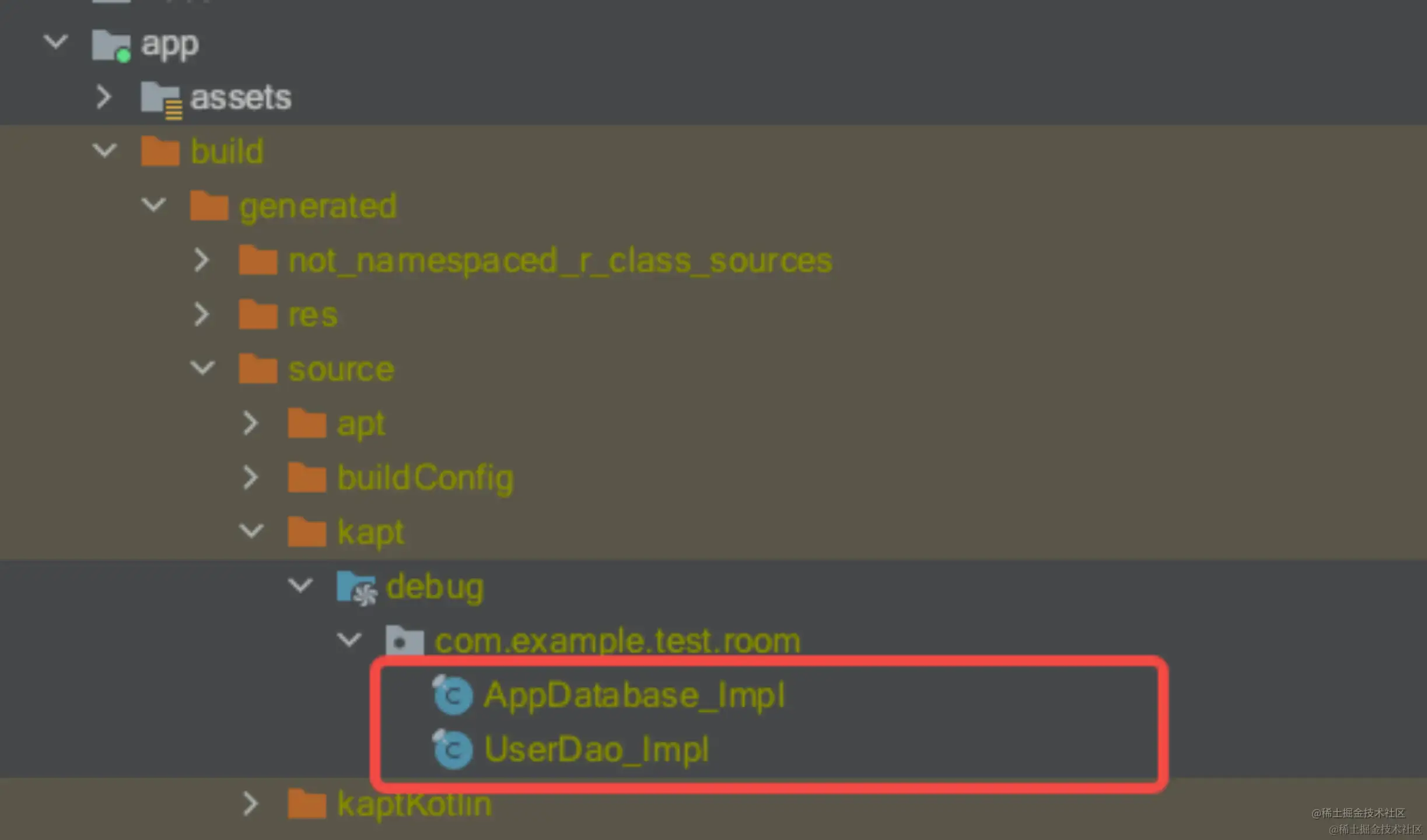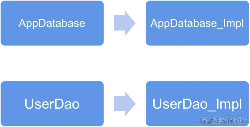 Room在编译期,通过kapt处理@Dao和@Database注解,生成DAO和Database的实现类 AppDatabase --> AppDatabase_Impl UserDao-->UserDao_Impl
