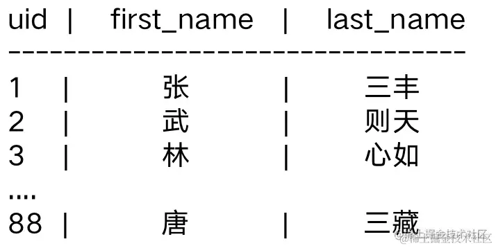 下面假设设计一个表,表名为user,数据表包含uid、first_name、 last_name 3个字段