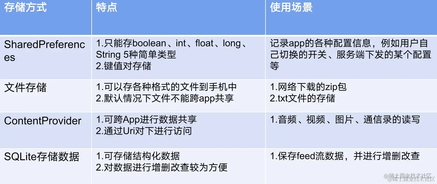 - Android数据存储方式对比,了解不同场景该使用的工具