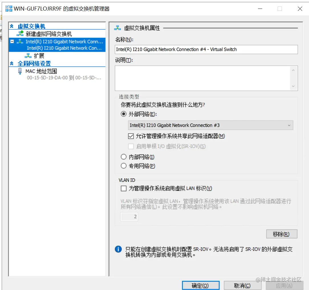 正常hyper-v是通过服务器NAT访问的,这里就会有问题,比如NAT后 NAS服务器得到的ip是172.16.1.x 而我们路由器分配的网段是192.168.31.x这样是没办法从外部访问到我们的NAS系统的,所以要设置好对应的网络,设置也很简单