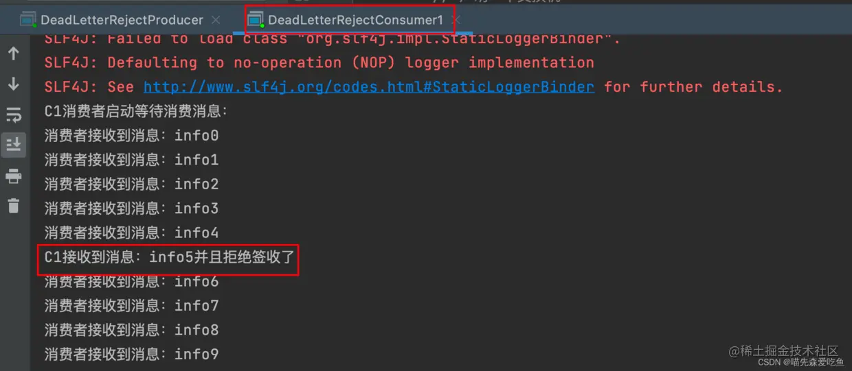 System.out.println("C1接收到消息:" + receivedMessage+"并且拒绝签收了");
