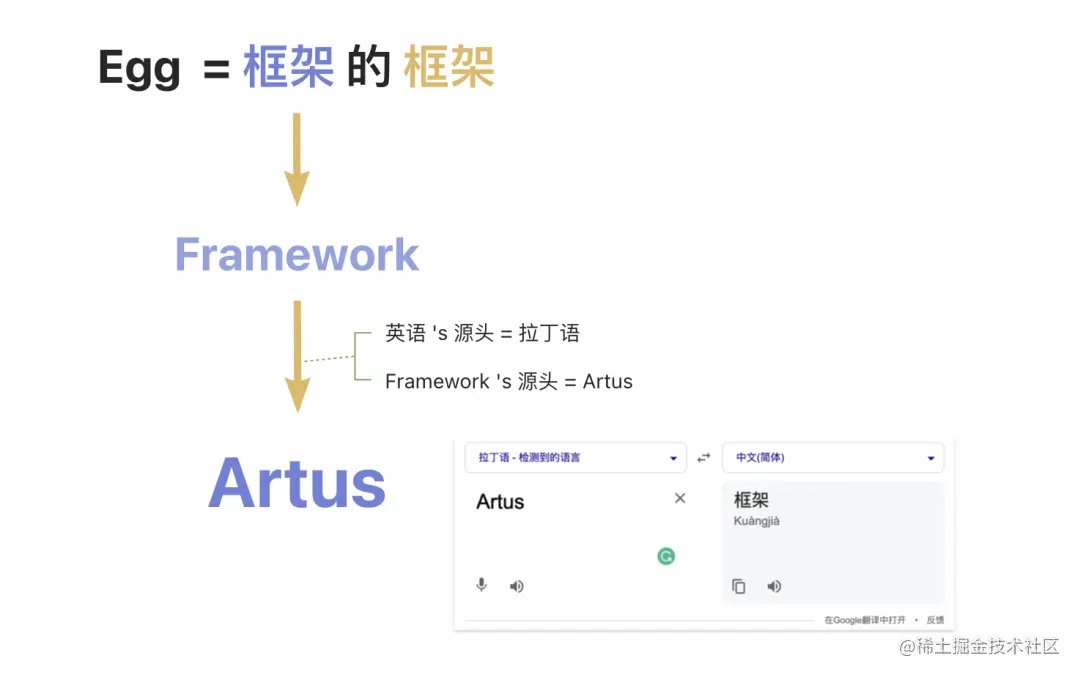 正如同 Egg 是框架的框架,拉丁语是英语的源头,因此我们把这个框架起了一个新的名字:Artus,它来自于拉丁语的框架。