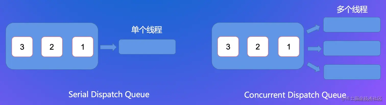// @param label 队列的名称,用于调试或日志 // @param attr 队列的类型,串行 DISPATCH_QUEUE_SERIAL / 并行 DISPATCH_ QUEUE_CONCURRENT // @return 创建的串行/并行队列 // 串行队列 dispatch_queue_t queue0 = dispatch_queue_create("com.yangyixuan.mySerialQueue", DISPATCH_QUEUE_SERIAL) ; // 并行队列 dispatch_queue_t queuel = dispatch_queue_create("com.yangyixuan.myConcurrentQueue", DISPATCH_QUEUE_CONCURRENT);