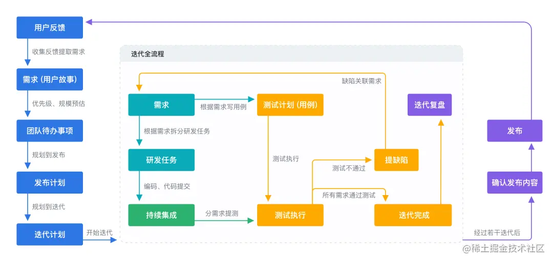 先来看看六大实践的流转过程:首先,通过「产品三步法」做出合理、适当的产品规划;有了规划之后,可以用影响地图的方式把业务目标和产品功能对应起来;接着,再用故事地图构建需求的全景,避免对局部的过度关注丧失了对需求的全局理解。紧接着,将需求逐层分解,让它不断往下传递,基于各自的研发工作流高效地分工协作。最后,用实例化需求的实践将需求有效澄清,给研发提供高质量的输入,最终进入到敏捷协作中去。
