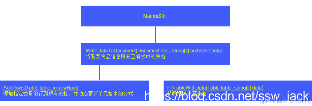 现在,让我们看看如何向现有表格添加行,如何将数据填充至表格,以及如何动态地更新公式。为了使逻辑更清晰,我创建了三个方法,并制作了图2,来展示它们的具体含义以及它们之间的调用关系。