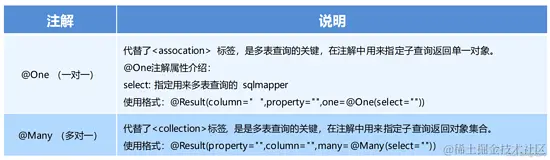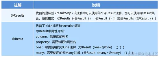 实现复杂关系映射之前我们可以在映射文件中通过配置来实现,使用注解开发后,我们可以使用@Results注解,@Result注解,@One注解,@Many注解组合完成复杂关系的配置