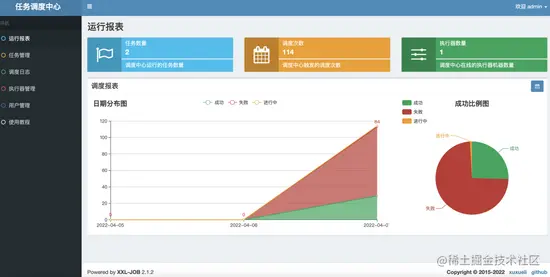 XXL-JOB 相较于 ElasticJob,最大的特点就是功能比较丰富,可运维能力比较强,不但支持控制台动态创建任务,还有调度日志、运行报表等功能。