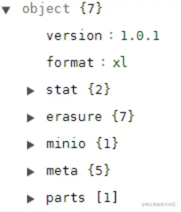 该字段指明了这个对象的格式是xl,MinIO内部存储数据主要有两种数据格式:xl与fs。使用如下命令启动的MinIO使用的存储格式是fs: