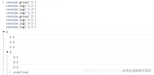 一般的consolelog()方法的输出没有层级关系,在需要一些显示层级关系的输出中显得苍白无力,使用console.group()可以达到我们的目的