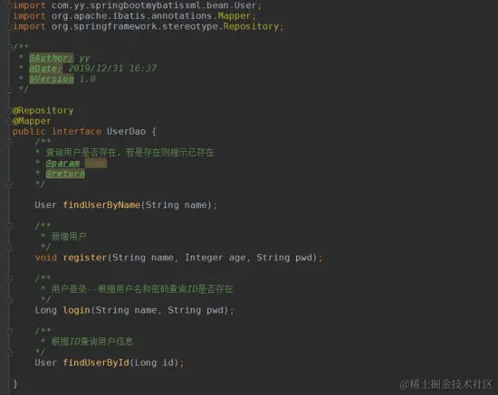├──UserDao 数据持久层,定义数据库相关接口方法