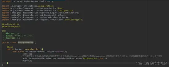 Swagger配置类,配置只有在方法上使用@ApiOperation注解才会暴露给swagger