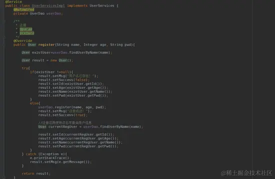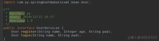 ├──UserServicesImpl 接口实现类,后端接口的具体方法实现