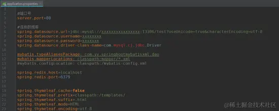 application.properties:配置文件,用于配置数据库、Redis等相关的配置信息,里面地址、用户名、密码记得换成你自己的可用的信息
