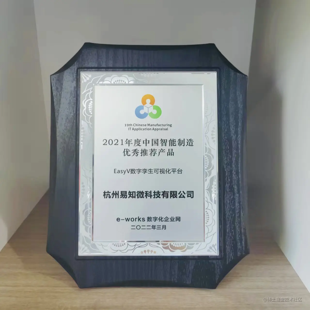 杭州易知微科技有限公司受邀参与了此次盛会,易知微凭借自主研发的EasyV数字孪生可视化搭建平台荣获“2021年度中国智能制造优秀推荐产品”和“2021中****国数字孪生解决方案优秀供应商”奖项。