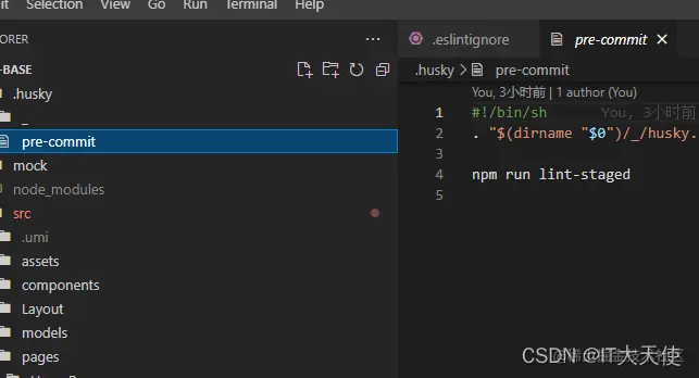 然后在运行下下面这个命令就会在.husky下面生成一个pre-commit脚本