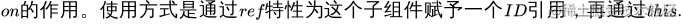在子组件上使用ref特性后,this.属性可以直接访问该子组件。可以代替事件emit 和refs.testId获取指定元素。注意: