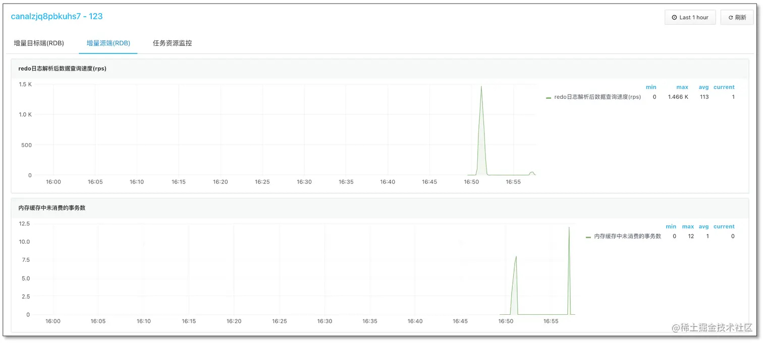 新版本的 CloudCanal 对于 Oracle 源端新增了两个监控指标,V$LOGMNR_CONTENTS 查询速率能准确观察 LogMiner 解析效率,内存中未提交事务数能简明判断后端消费和解析的压力,某些情况下还能精确判定 LogMiner 否吐完数据。