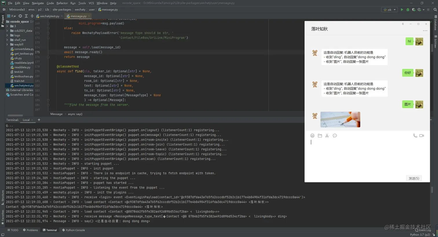 await msg.say('这是自动回复: 机器人目前的功能是\n- 收到"ding", 自动回复"dong dong dong"\n- 收到"图片", 自动回复一张图片')