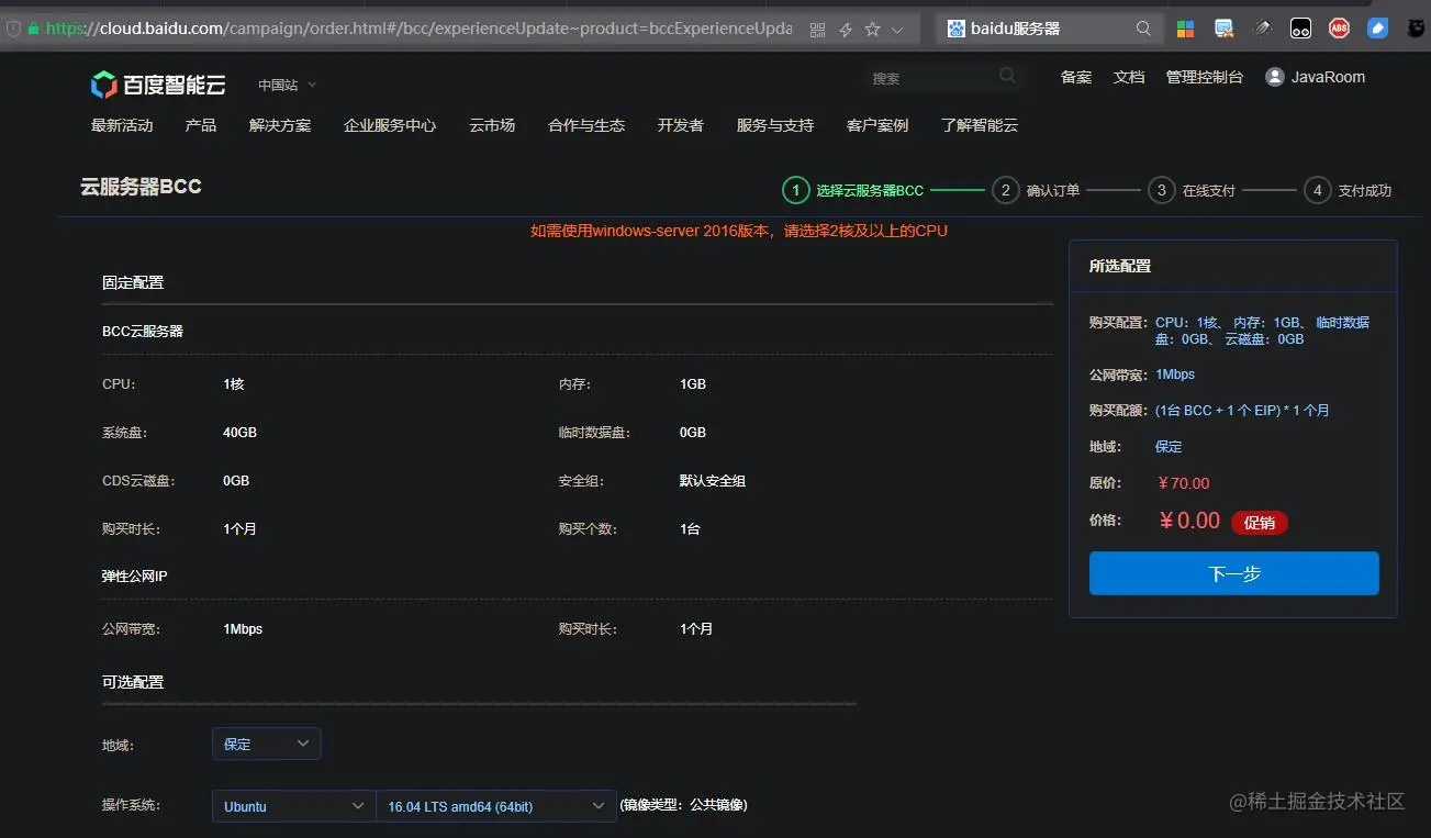 找到新人免费上云活动,然后开始!!!