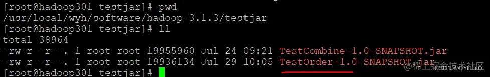 [root@hadoop301 testjar]# hadoop jar TestOrder-1.0-SNAPSHOT.jar test.wyh.order.OrderJobMain