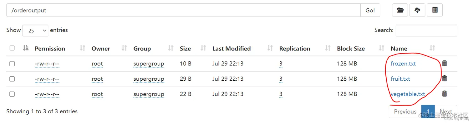 在这个案例中我们想要实现的是,对于一个订单文件中的订单数据进行过滤,将订单中的不同类别商品输出到不同的文件中,这里与分区不同的是,分区无法指定写入的输出文件名,而这里我们可以指定水果放在fruit.txt中,冷冻食品放到frozen.txt中,蔬菜放到vegetable.txt中。