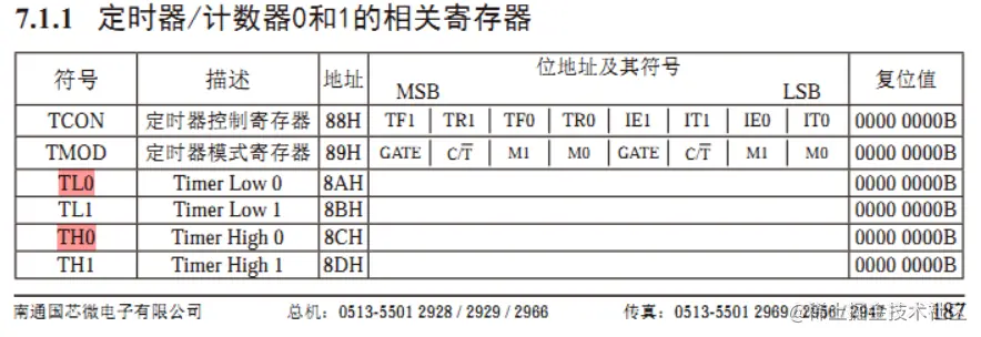 注→TMOD是不可位寻址:寄存器只能进行整体的进行赋值『十六进制0x』