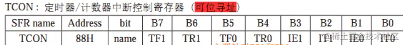 TCON可位寻址,注→可位寻址可以为每一位寄存器单独赋值。
