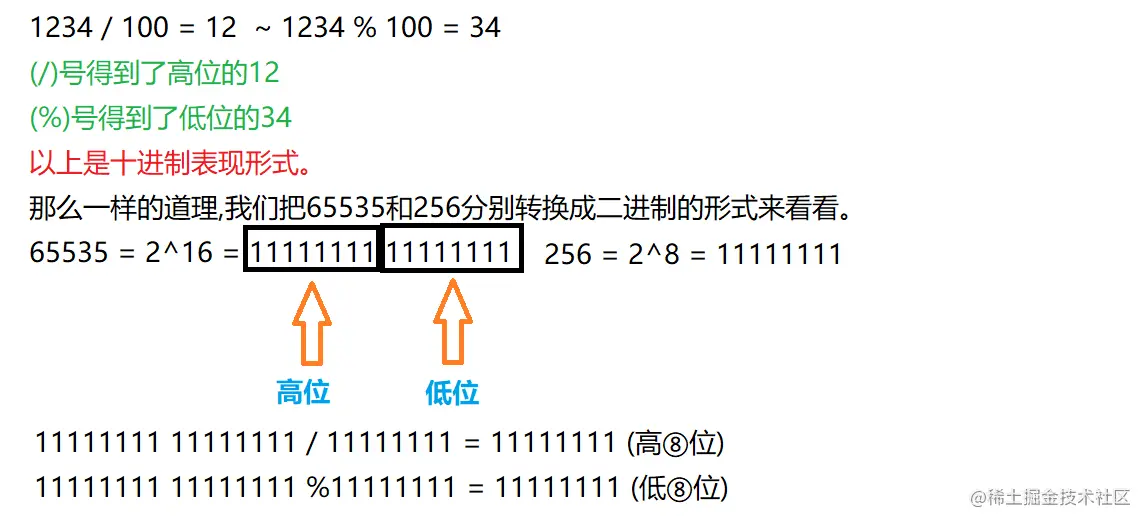 TH0 = 64535/256;把高8位拿出来了,TL0=64535%256;低8位拿出来了。这个可能理解起来会比较难点,但是其实这样就很好理解了,用画图的方法来演示下吧↓