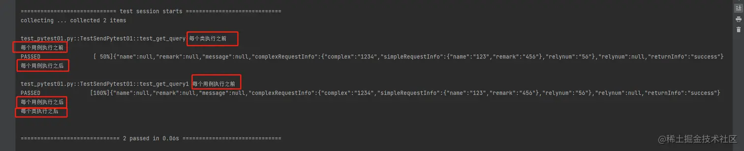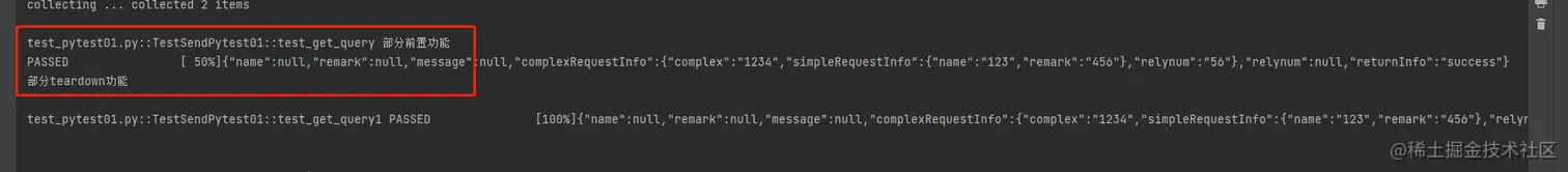 发起pytest调用,可以发现控制台输出了我们期望的值