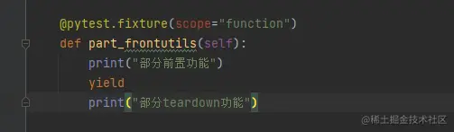 从上面的例子不难发现,每一次执行都会调用,难免会有些绝对,对于前后置我们只需要针对某些函数发起,那该如何解决这个问题呢?那么我们可以使用@pytest.fixtrue 来实现部分的前后置