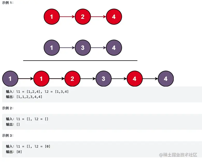将两个升序链表合并为一个新的 升序 链表并返回。新链表是通过拼接给定的两个链表的所有节点组成的。