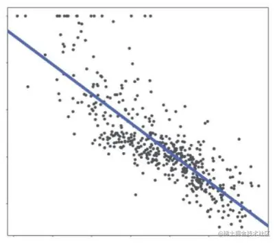 相关系数一般会用一个 -1 到 1 之间的数字表示,它能够给我提供两个信息。以文章开头的例子中,低收入人群占比和房价之间的关系趋势线来说明: