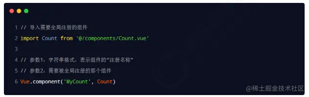 在 vue 项目的 main.js 入口文件中,通过 Vue.component() 方法,可以注册全局组件。示例代码如下: