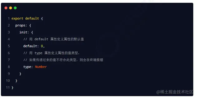 在声明自定义属性时,可以通过 type 来定义属性的值类型。示例代码如下
