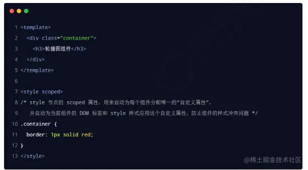 为了提高开发效率和开发体验,vue 为 style 节点提供了 scoped 属性,从而防止组件之间的样式冲突问题:
