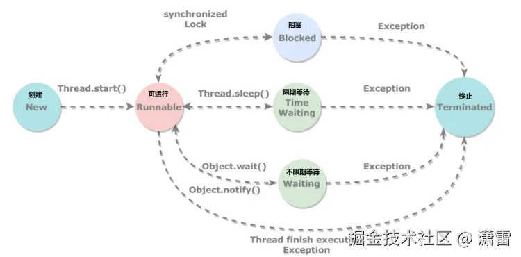 - New:表示刚刚创建的线程,这种线程还没有开始执行