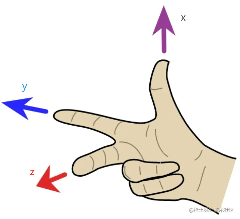 规定把右手放在原点的位置,使大拇指,食指和中指互成直角,把大拇指指向x轴的正方向,食指指向y轴的正方向,此时中指所指的方向就是z轴的正方向,由此构成的坐标系就称为右手坐标系 。