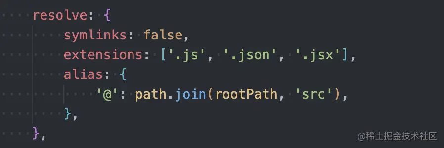 - 在 resolve 开启别名 alias,开启别名后,需要配套在跟目录中设置 jsconfig.json 文件,才能实现在 vscode 中点击跳转到对应文件,如果不配置的话,vscode 是识别不了别名的