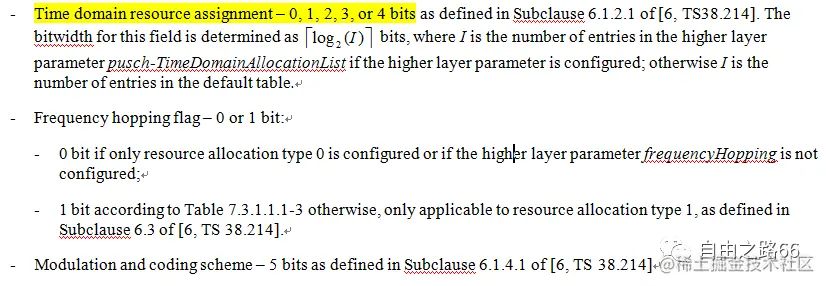 在DCI format 0-1中,Time domain resource assignment field的比特数取决于pdsch-TimeDomainAllocationList是否配置及其数组长度。