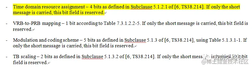 在DCI format 1-1中,Time domain resource assignment field的比特数取决于pdsch-TimeDomainAllocationList是否配置及其数组长度。