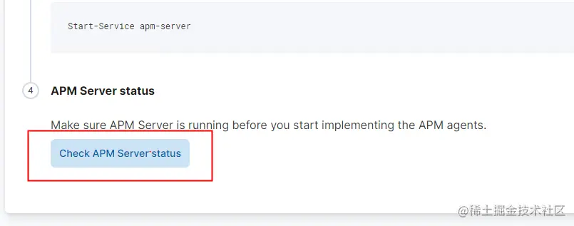 然后页面向下拉,点击Check APM Server status——检测APM Server的状态。