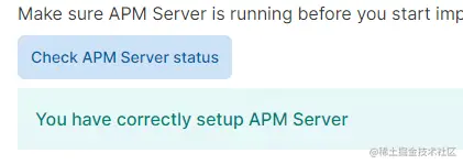 如下图,提示了已经正确安装了APM Server。