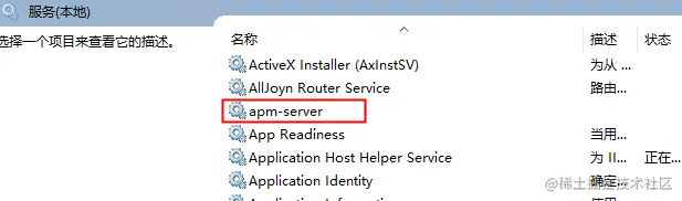 然后我们打开控制面板—管理工具—服务,就可以看到,我们已经安装了一个apm-server的服务了。