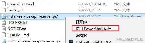 然后运行apm-server.exe,这里需要注意的是apm-server.exe是个window服务,所以这里不能双击运行。不过安装包中已经有可以启动服务的文件了——install-service-apm-server.ps1。