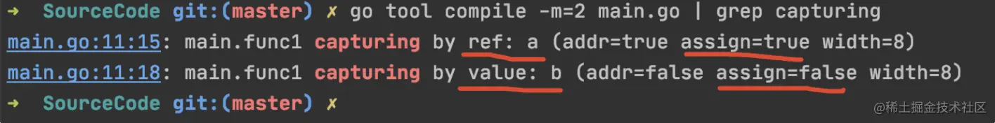go tool compile -m=2 main.go | grep capturing