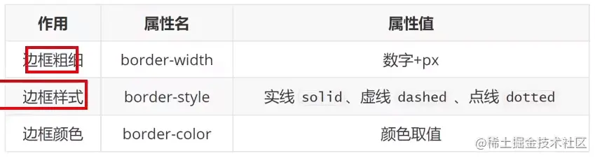 作用:给设置边框粗细、边框样式、边框颜色效果
