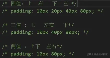 padding属性可以当做复合属性使用,表示单独设置某个方向的内容